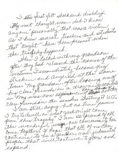 I met and talked with a young man who had just fled the campus. He told me how that morning he, by chance, parked on the side of campus that was away from the shooting. We sat in awe as we watched the news and I left him with the question if he is aware that God had saved him from tragedy. With wide eyes he agreed.