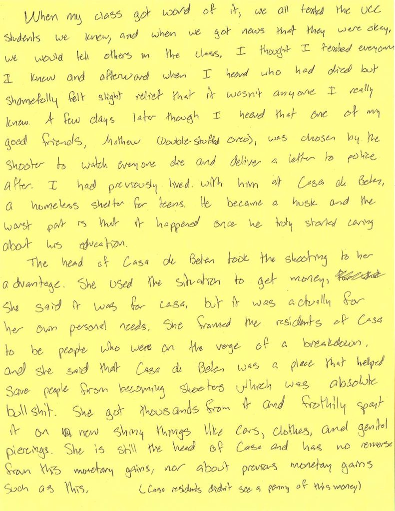The Roseburg community suffered together, and for the first time I saw everyone come together and support each other.